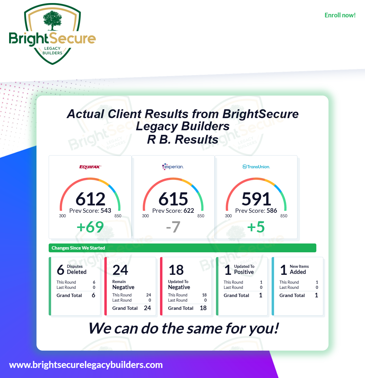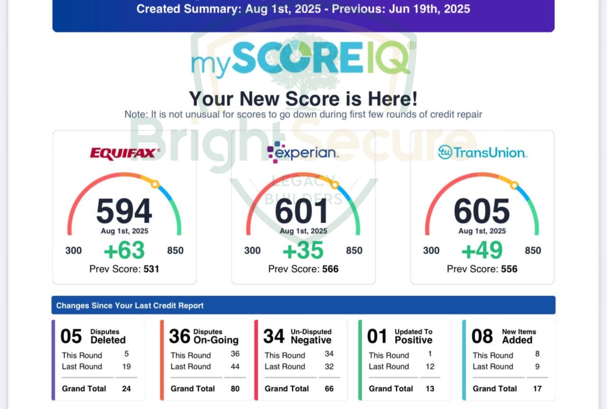 Brightsecure Legacy Builders helps moms, families, and future entrepreneurs repair credit, build financial confidence, and create lasting generational wealth. You don’t need to be a financial expert, we’ve got the tools, coaching, and support to meet you exactly where you are.